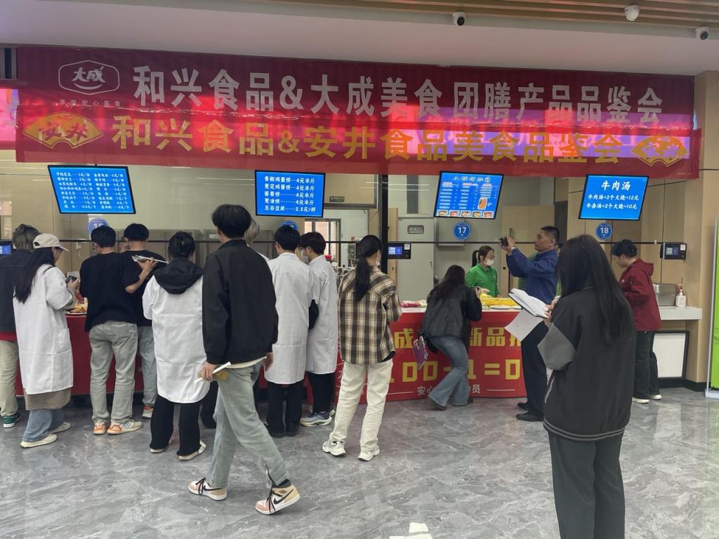 为了让大家充分了解配送食材新鲜度,检查组人员到餐厅二楼参加体验了食堂原材料供应商举办的产品品鉴会。供应商现场为参加活动的师生烹饪美食,活动在一片称赞中顺利举行。